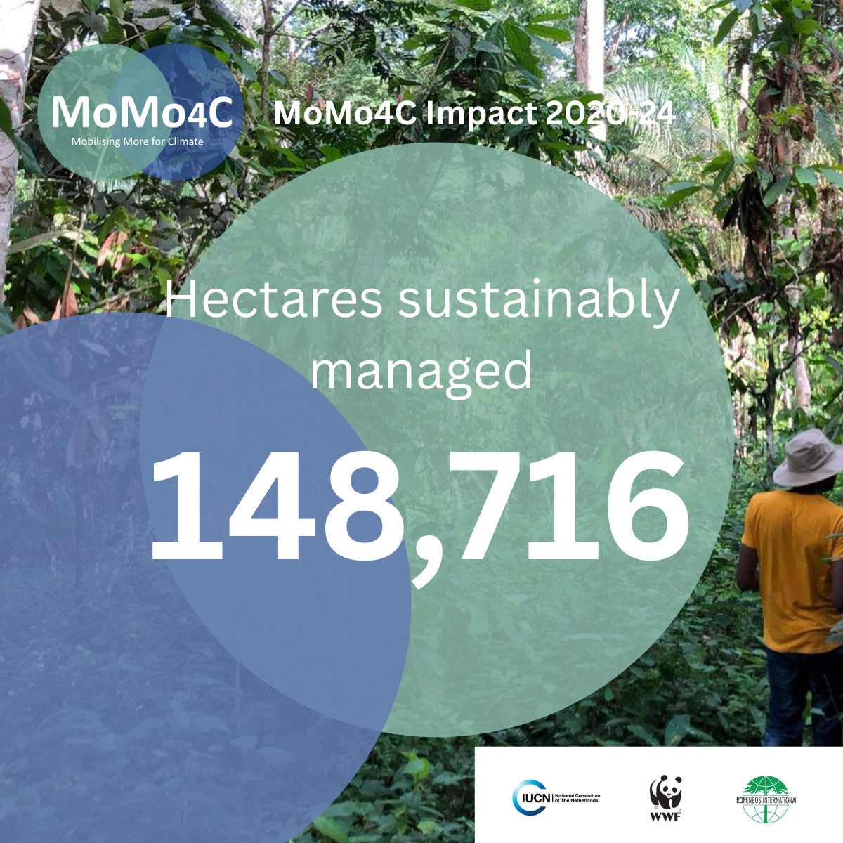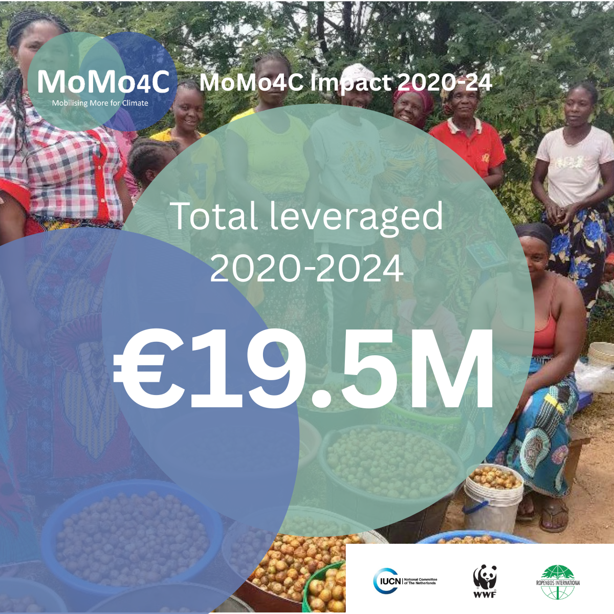 Mobilising More for Climate (MoMo4C) is a five-year programme led by IUCN Netherlands, WWF Netherlands, and Tropenbos International, funded by the Netherlands Ministry of Foreign Affairs with a total budget of €8 million. The programme brings together entrepreneurs, companies, policymakers, investors, civil society organisations, and local communities to develop and implement green business propositions that address the causes and impacts of climate change at the landscape level in developing countries.